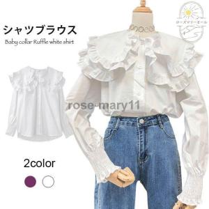Amazon ロンショップ R O N Shop フリル 立ち襟 シャツ ブラウス 大人 可愛い 清楚 レディース トップス 長袖 白シャツ シャツ ブラウス 通販